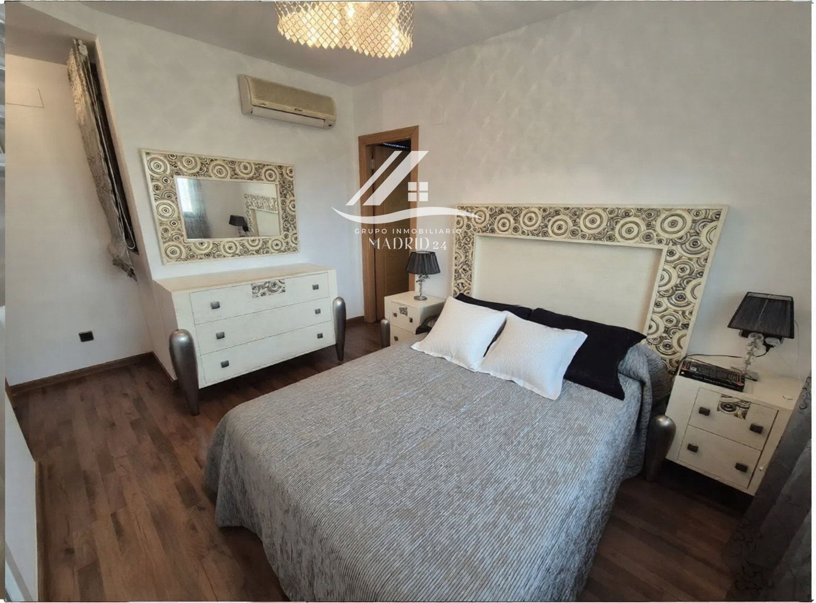 Descanso y Confort: El dormitorio principal es un refugio de paz, con detalles en madera y tonos grises que invitan al relax, complementado por un baño funcional de gres con acabados de fácil mantenimiento.