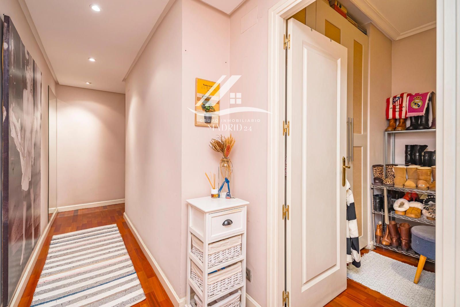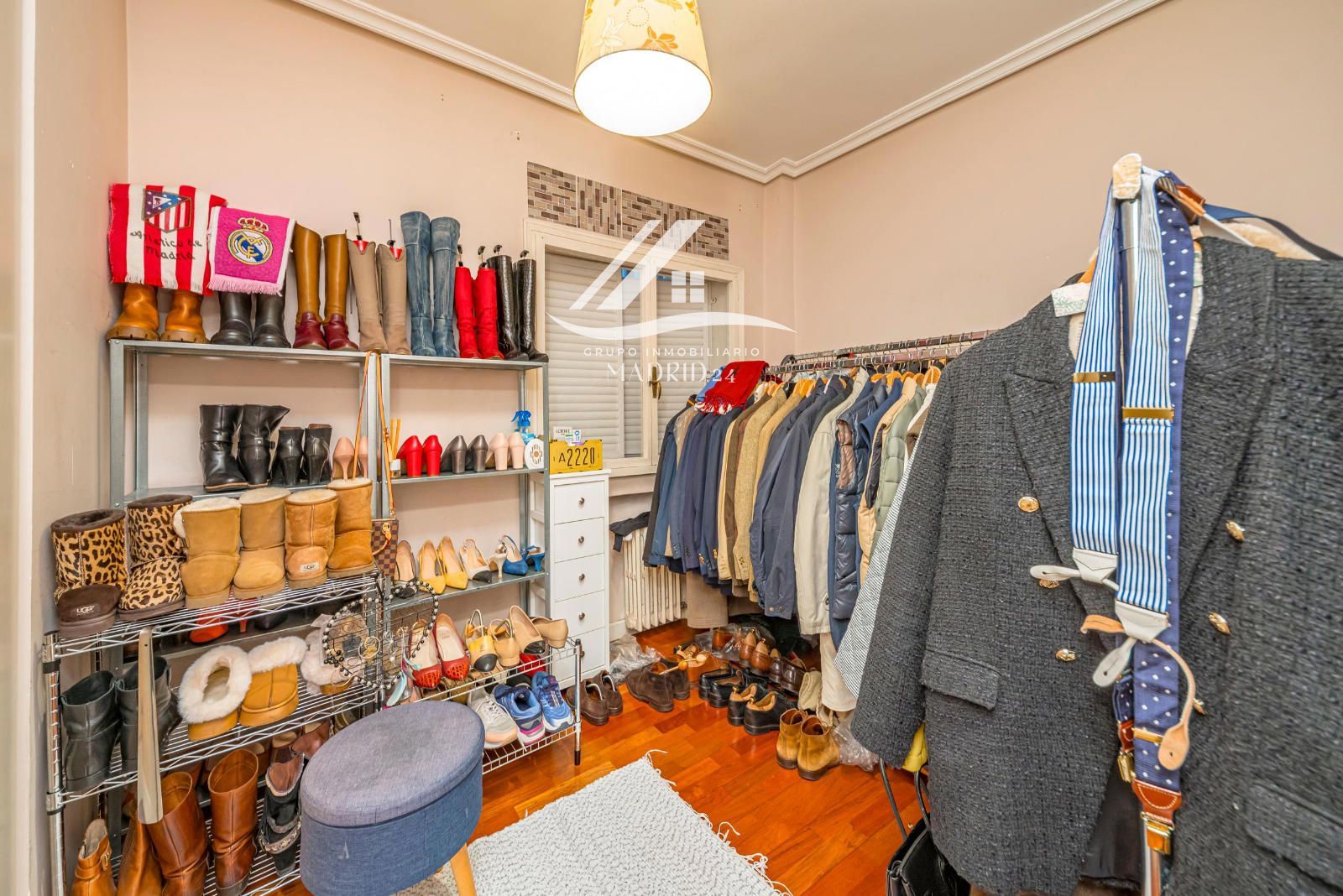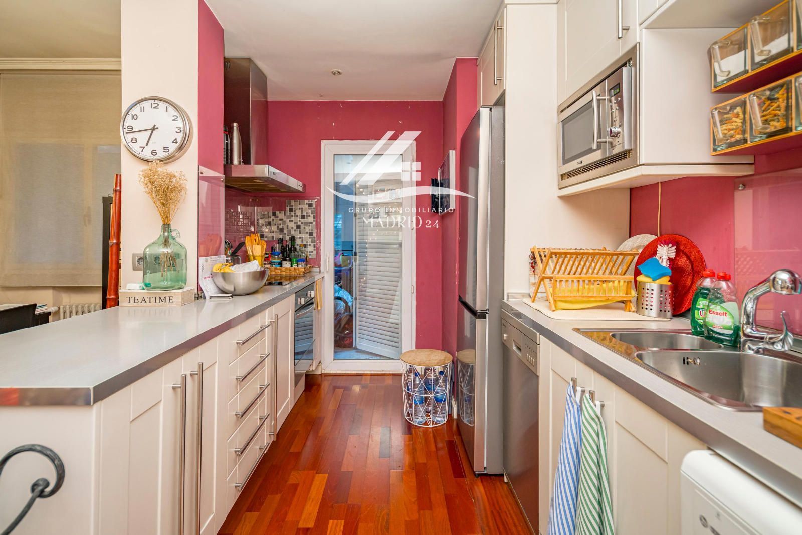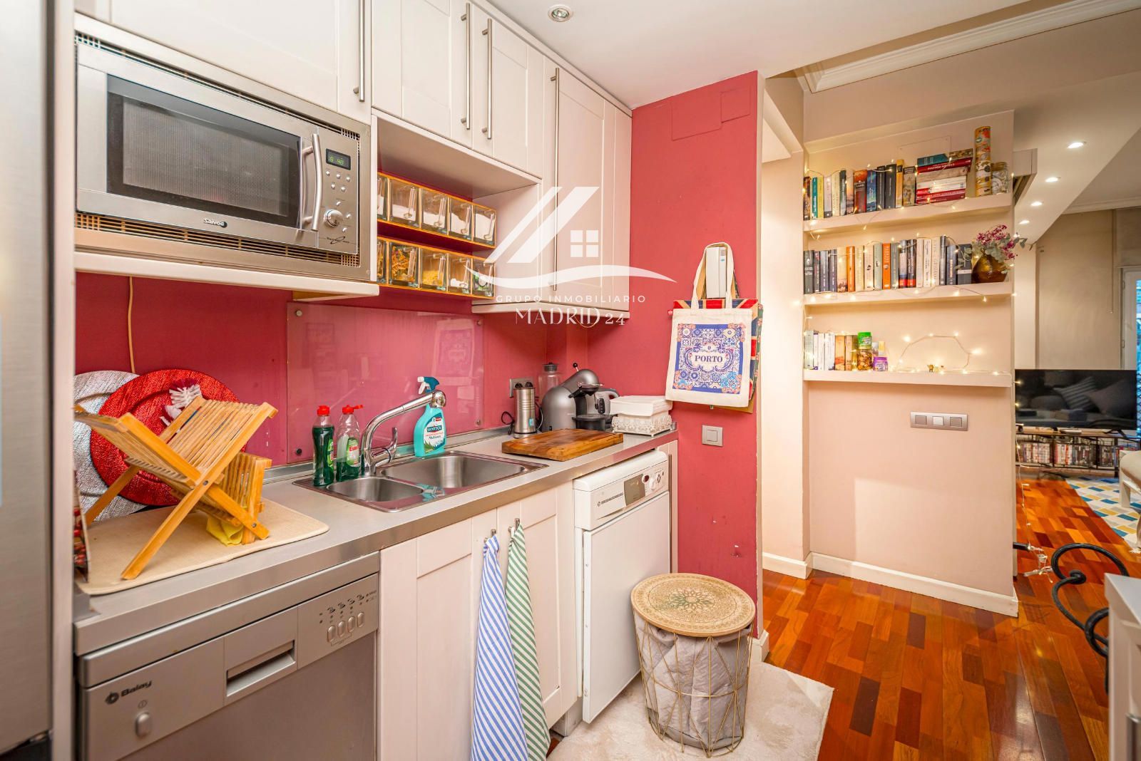 El piso se encuentra en excelente estado de conservación, y entre sus acabados destacan los suelos de tarima de madera, armarios empotrados y ventanas de aluminio lacadas en blanco, que aportan luminosidad natural y un ambiente cálido y moderno.