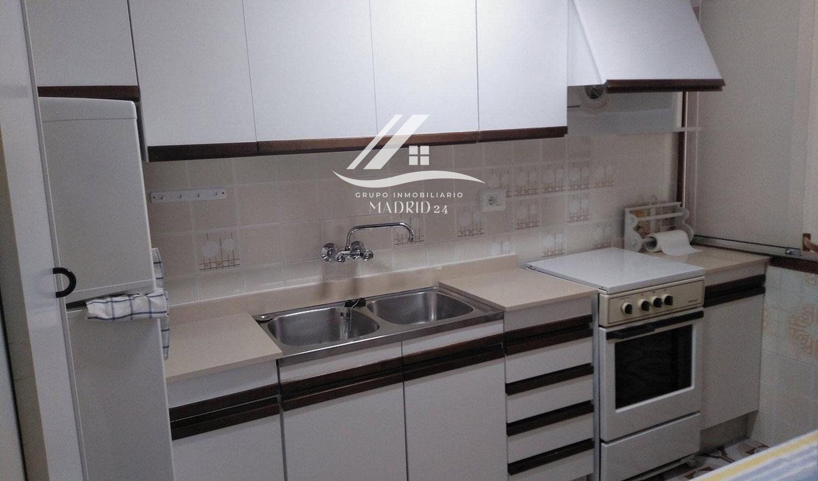 Cocina Independiente: Totalmente equipada con armarios blancos, encimera de tono neutro, doble fregadero, cocina de gas y horno.