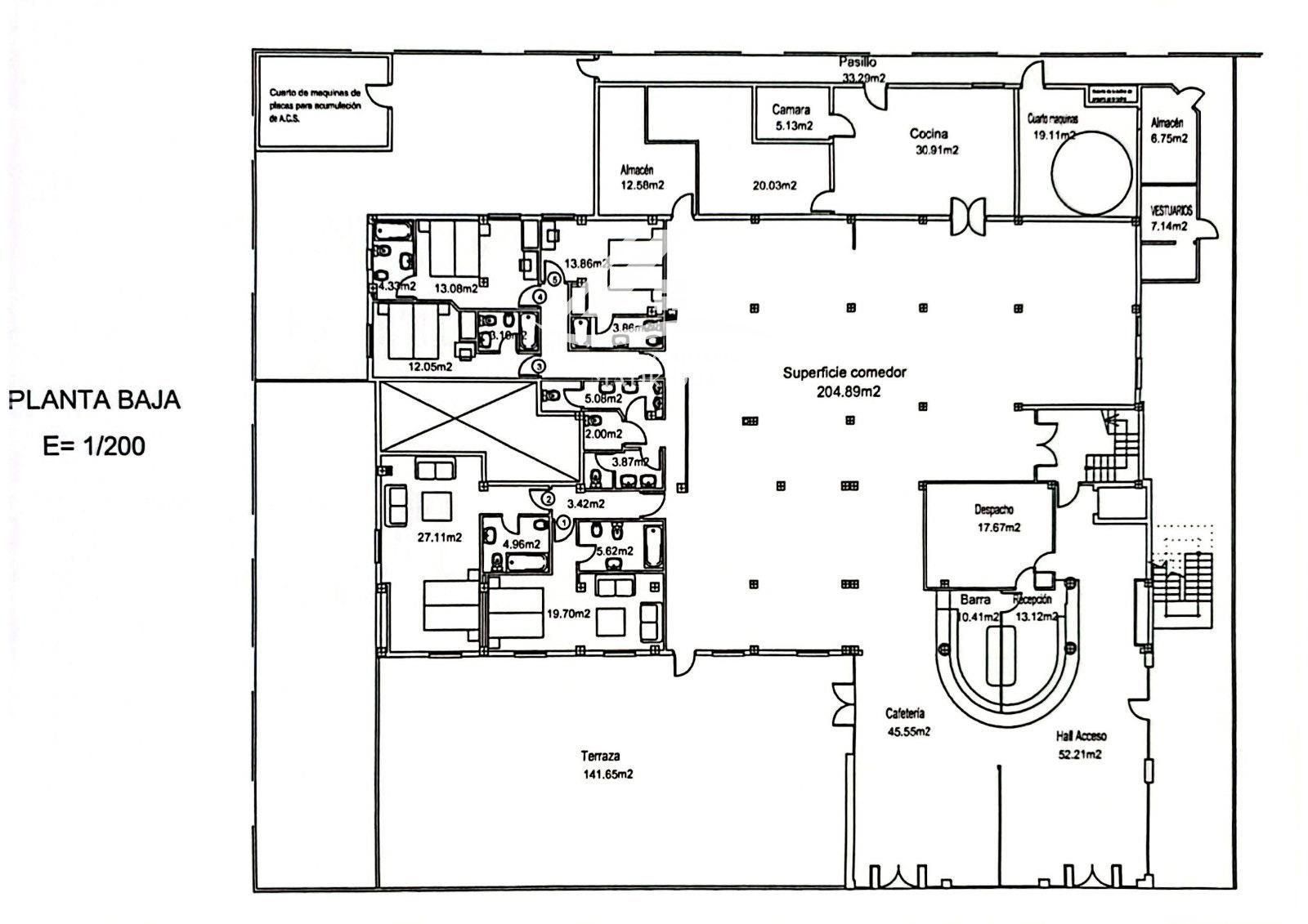 Planta baja: 663,50 m² (recepción, restaurante, zonas comunes)