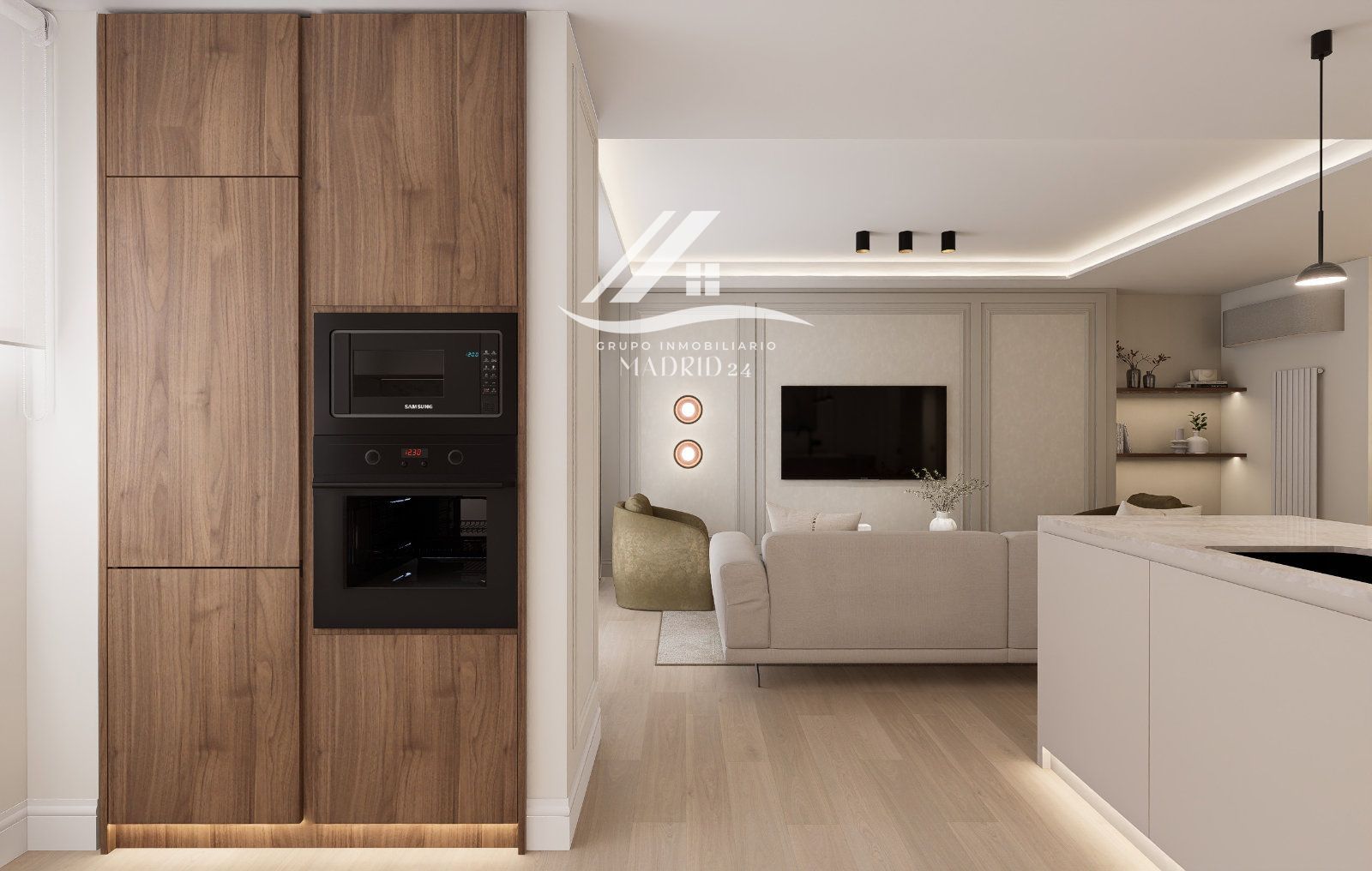 Appartement en vente á Madrid, avec 122 m2, 3 chambres et 3 salles de bain, Ascenseur, Meublé et Air conditionné.