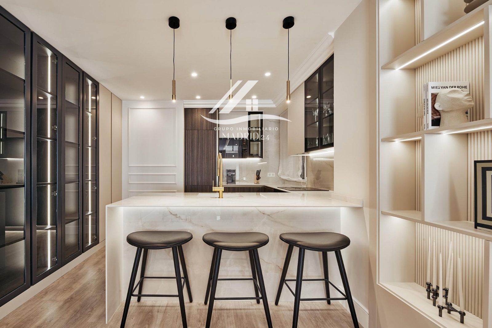 Appartement en vente á Madrid, avec 122 m2, 3 chambres et 3 salles de bain, Ascenseur, Meublé et Air conditionné.