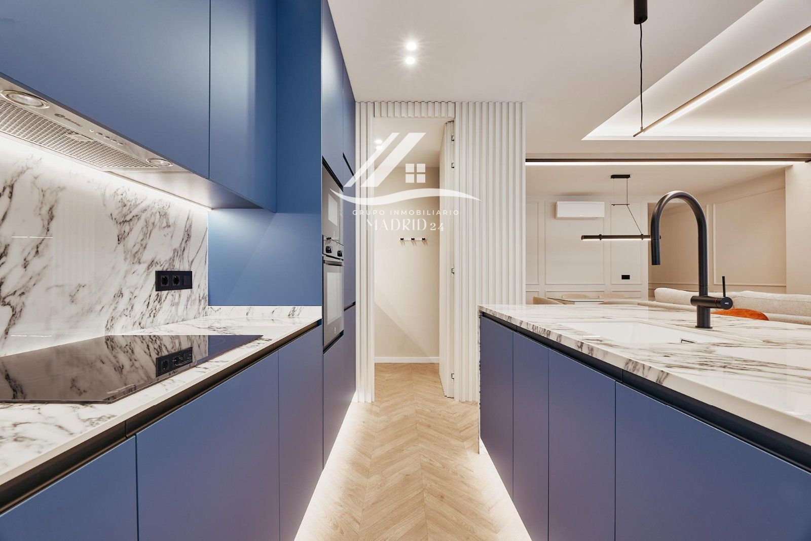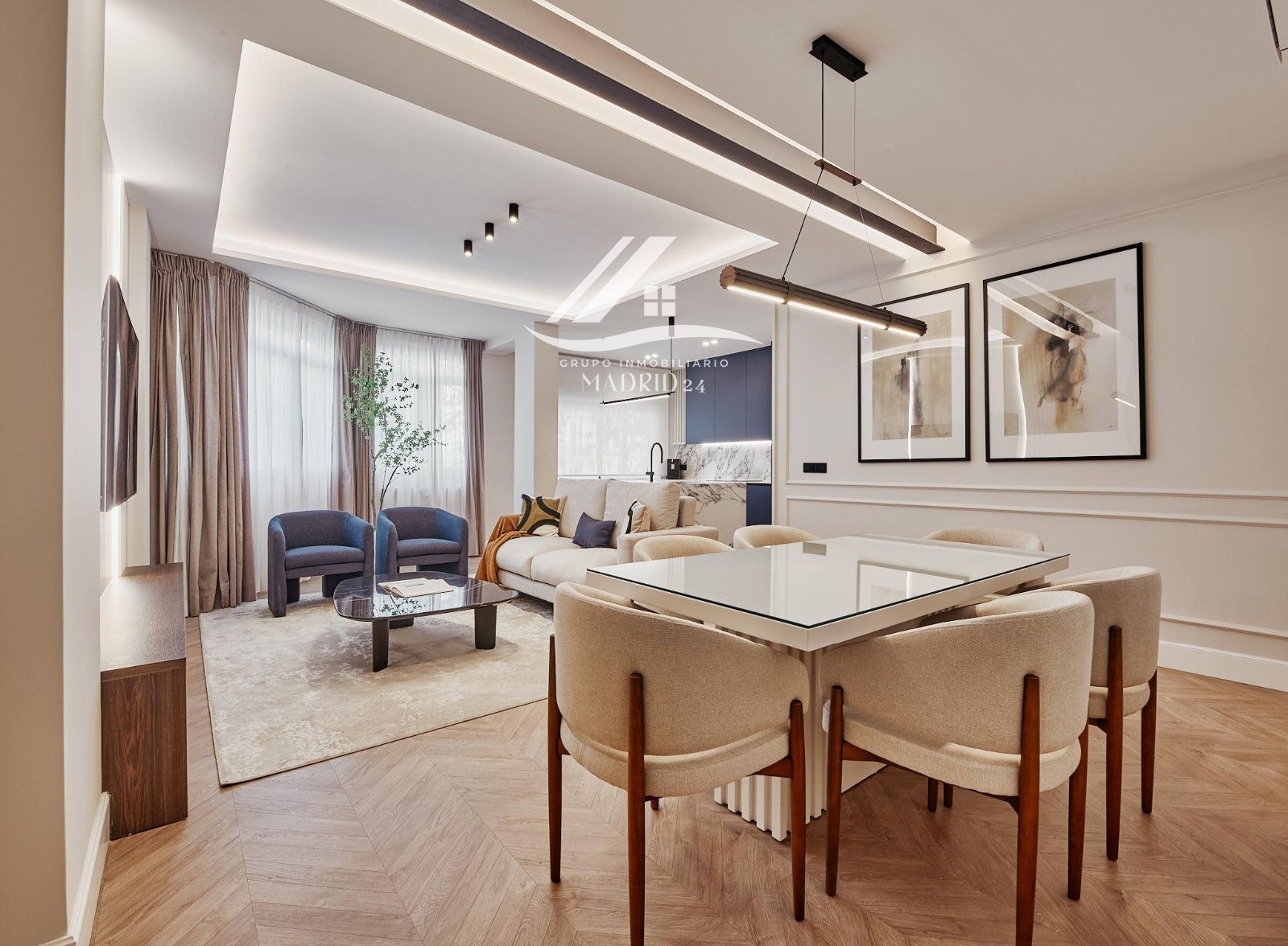 Appartement en vente á Madrid, avec 129 m2, 3 chambres et 3 salles de bain, Garage, Ascenseur, Meublé et Air conditionné.